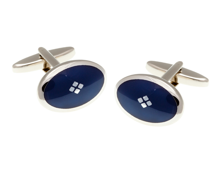 A geometric diamond is inset in a strong navy blue enamel to create a beautifully classic, vintage themed oval cufflink that can be worn for all occasions. The perfect accessory for every man's wardrobe, team with our Diamonds For Ever silk pocket square to add a dash of colour and panache to your outfit.