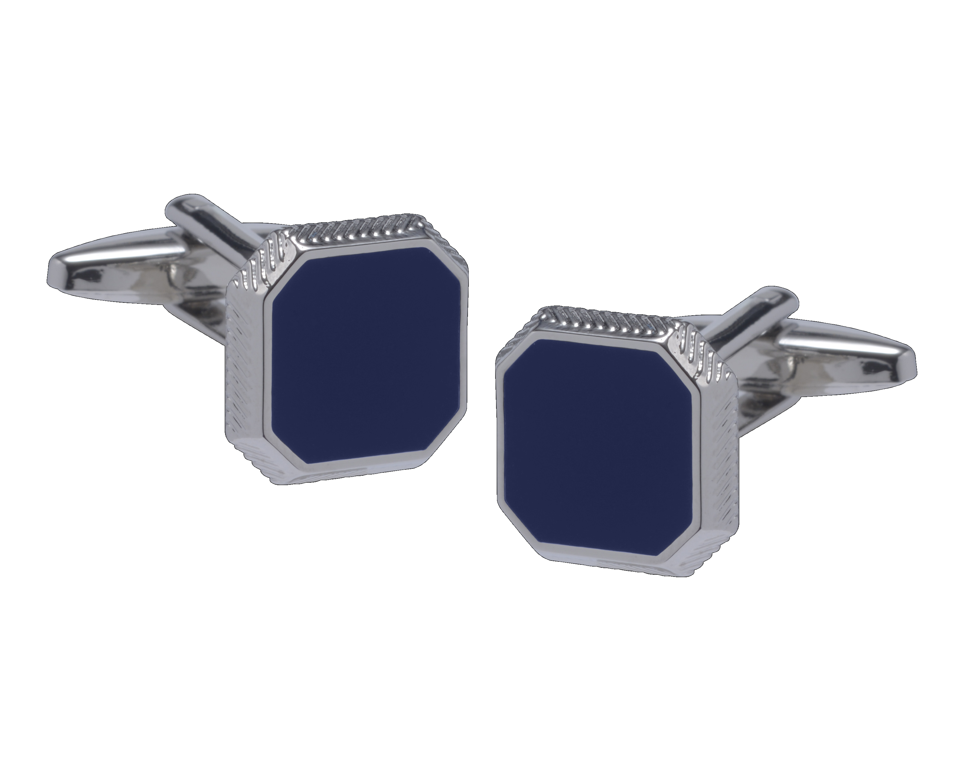 A unique refined octagon cufflink with a deep navy blue enamel inset & textured edging. This sophisticated design offers versatility to every formal wear accessory wardrobe. Perfect for weddings, black tie and beyond.