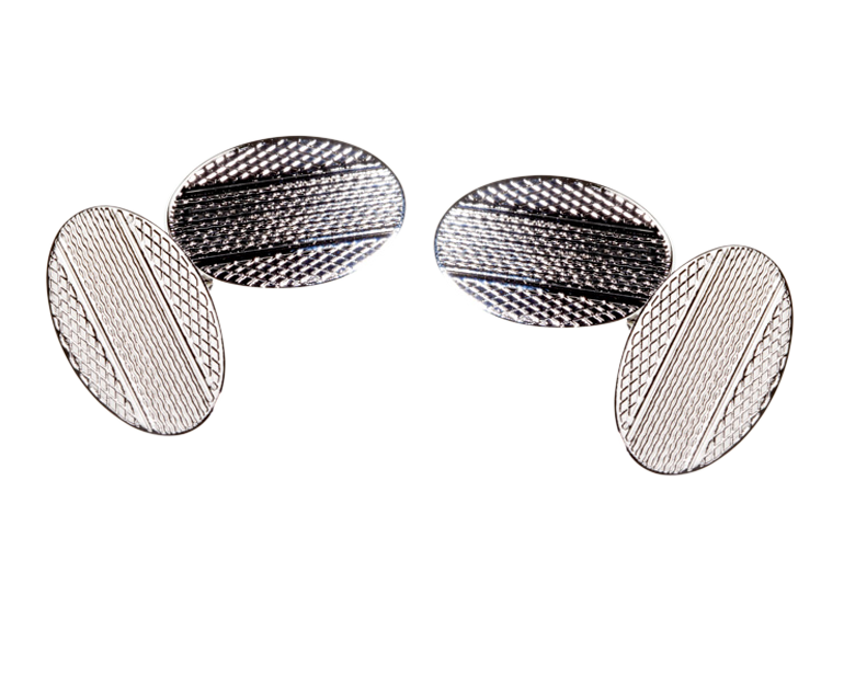 Classic Vintage Engraved Centre Stripe Chain Link Cufflinks