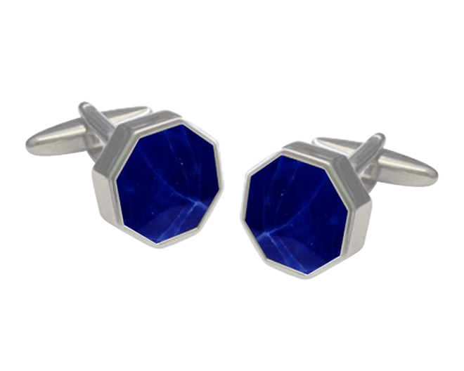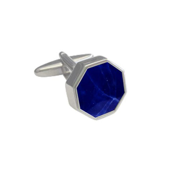 These semi-precious stone cufflinks sees beautiful blue sodalite sunken into an octagonal polished metal case. A stylish accompaniment to a crisp white shirt.