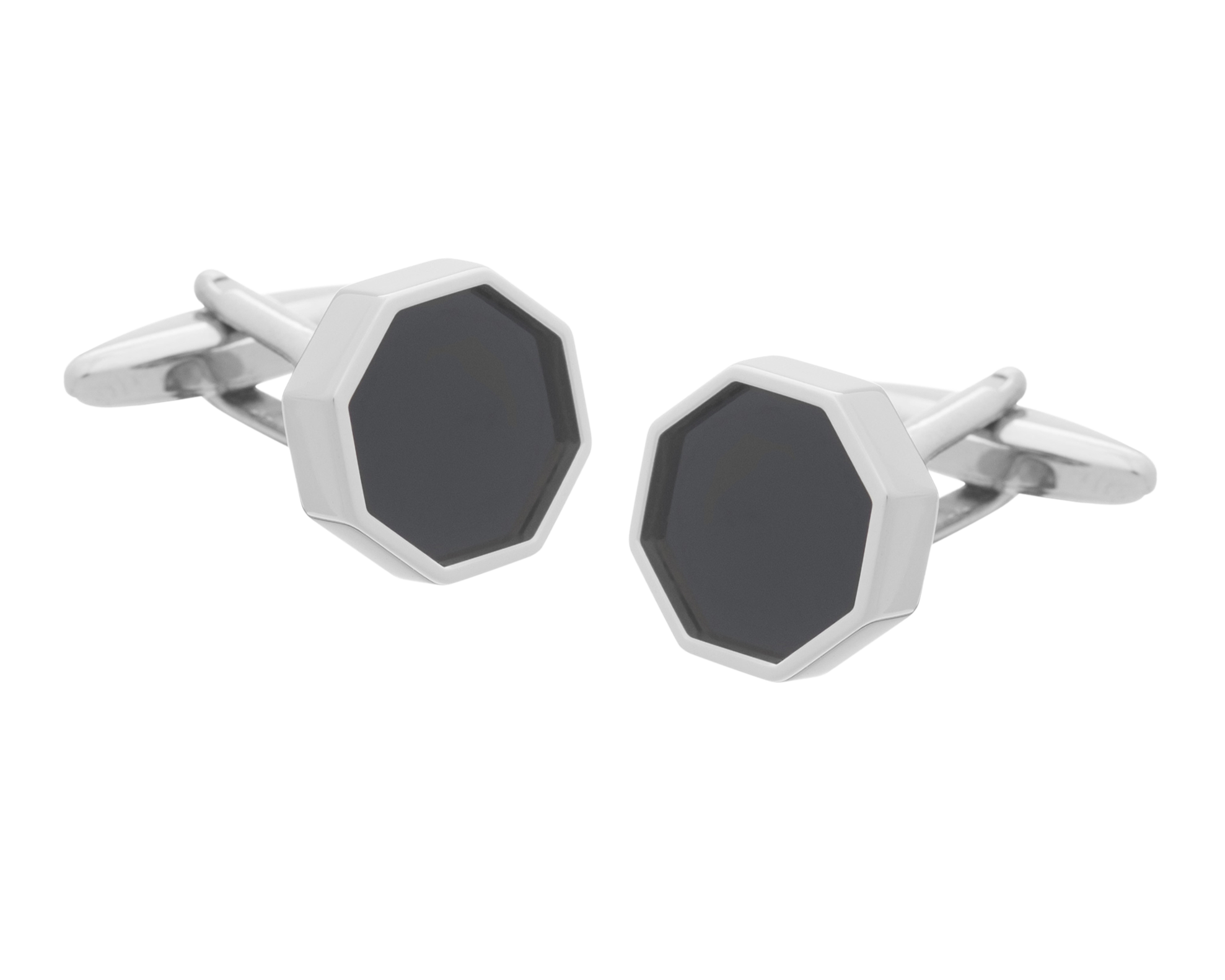 These semi-precious stone cufflinks sees beautiful black onyx sunken into an octagonal polished metal case. A stylish accompaniment to a crisp white shirt.