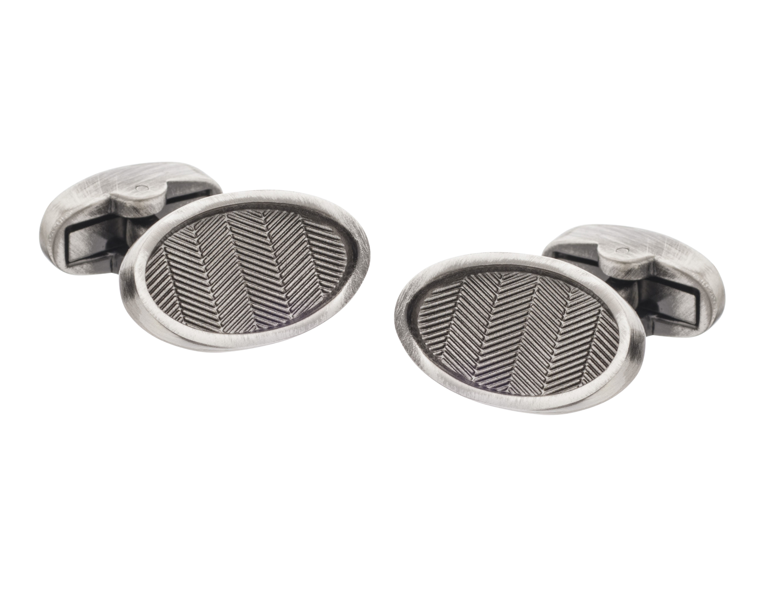 Classically shaped this traditional plain metal cufflink features a decorative herringbone panel. The vintage look is achieved by an antique silver plate finish.