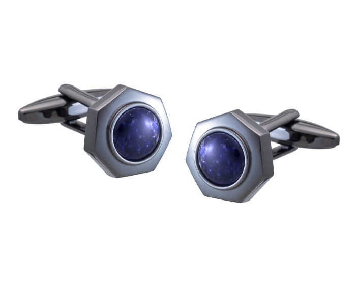 A Bolt Of Elegance Gunmetal & Sodalite Hexagon Cufflinks