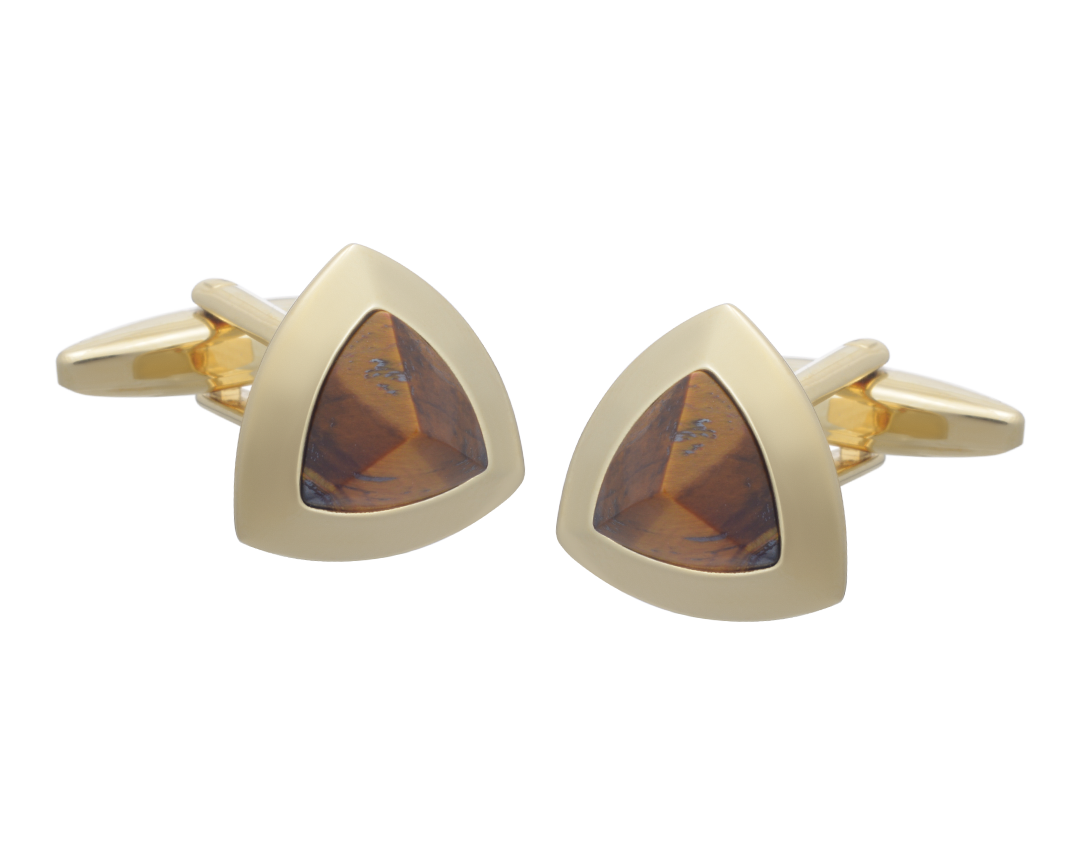 A unique angular shaped Tiger Eye with an audacious Gold casing. These cufflinks are masculine statement to the cuff for weddings, special occasions or that important meeting that needs an air of confidence.