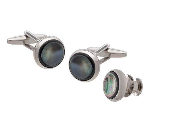 Signature Collection No7 Smokey Mother of Pearl & Silver Cufflink and Lapel Pin Set