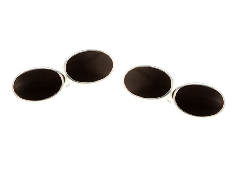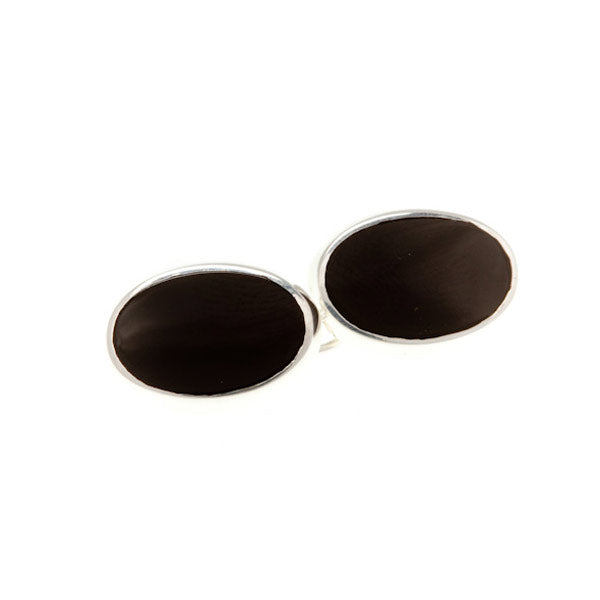 925 Sterling Silver Onyx Oval Chain Link Cufflinks