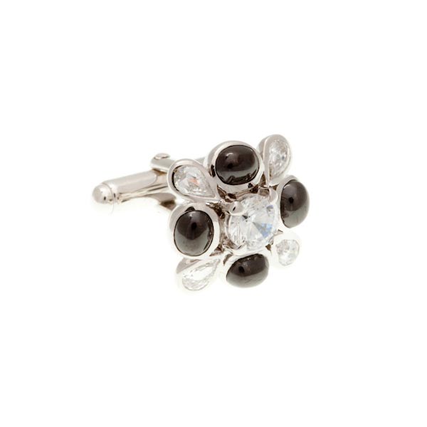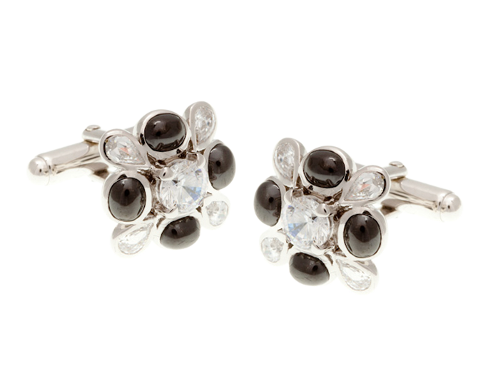 A cluster of teardrops created with faceted clear crystals linked with pearl shaped beads of jet black fibre optic glass will add some sparkle to your outfit.