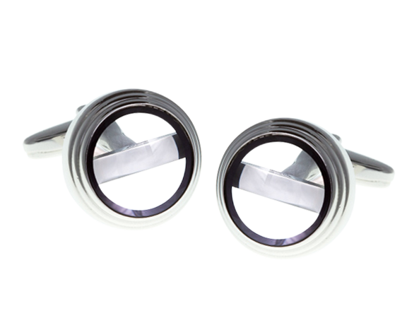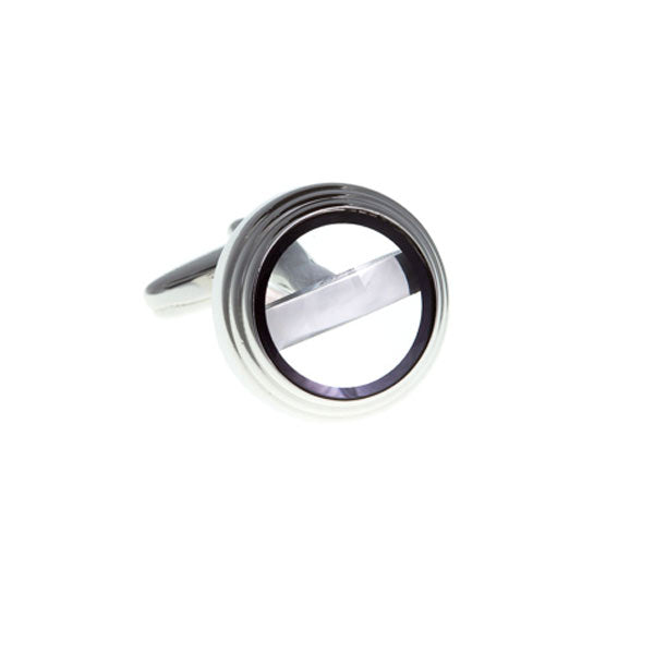 These round clear glass cufflinks with black rim detail are simple and stylish. The glass reflects the light when worn to ensure these unique cufflinks are noticeable on the cuff.