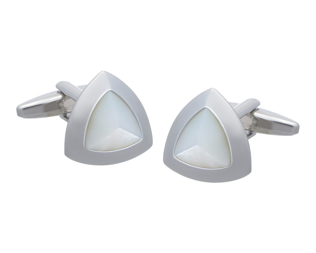 A unique angular shaped Mother Of Pearl with an audacious Silver casing. These cufflinks are masculine statement to the cuff for weddings, special occasions or that important meeting that needs an air of confidence.