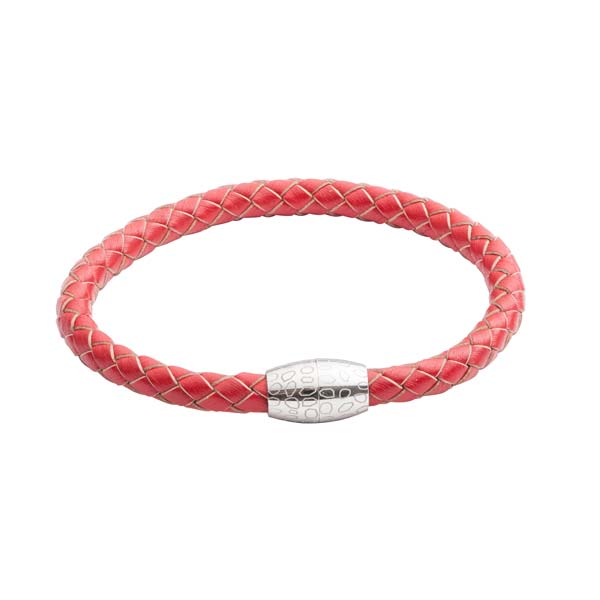The visible edging of the braided genuine leather creates a rugged feel to this classic bracelet. A simple, single wrap design, it features an African inspired, laser engraved magnetic clasp.