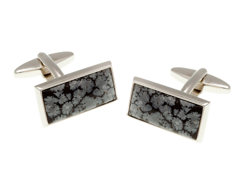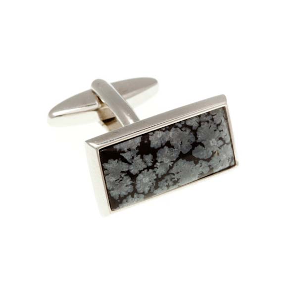 Strong classic corners determine the edges of these beautiful cabochon semi precious snowflake rectangle cufflinks.