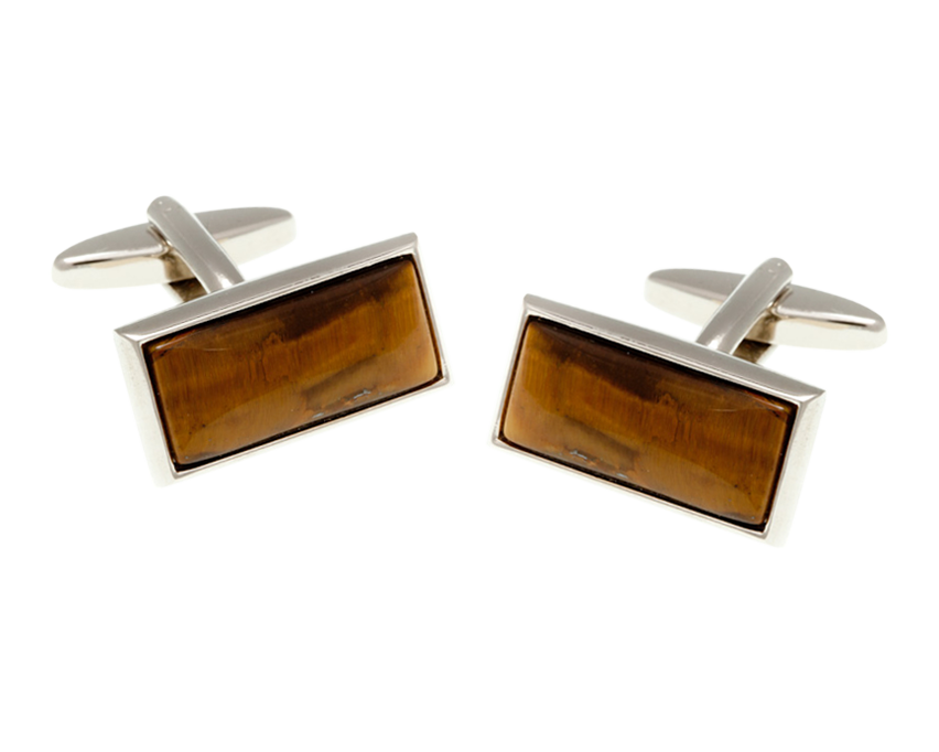 Strong classic corners determine the edges of these beautiful cabochon semi precious rectangle Tiger Eye cufflinks.