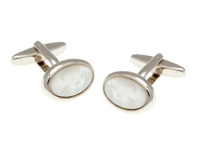 Very stylish Mother of Pearl oval cabochon cufflinks perfect for any dinner party or special occasion. Move over James Bond.