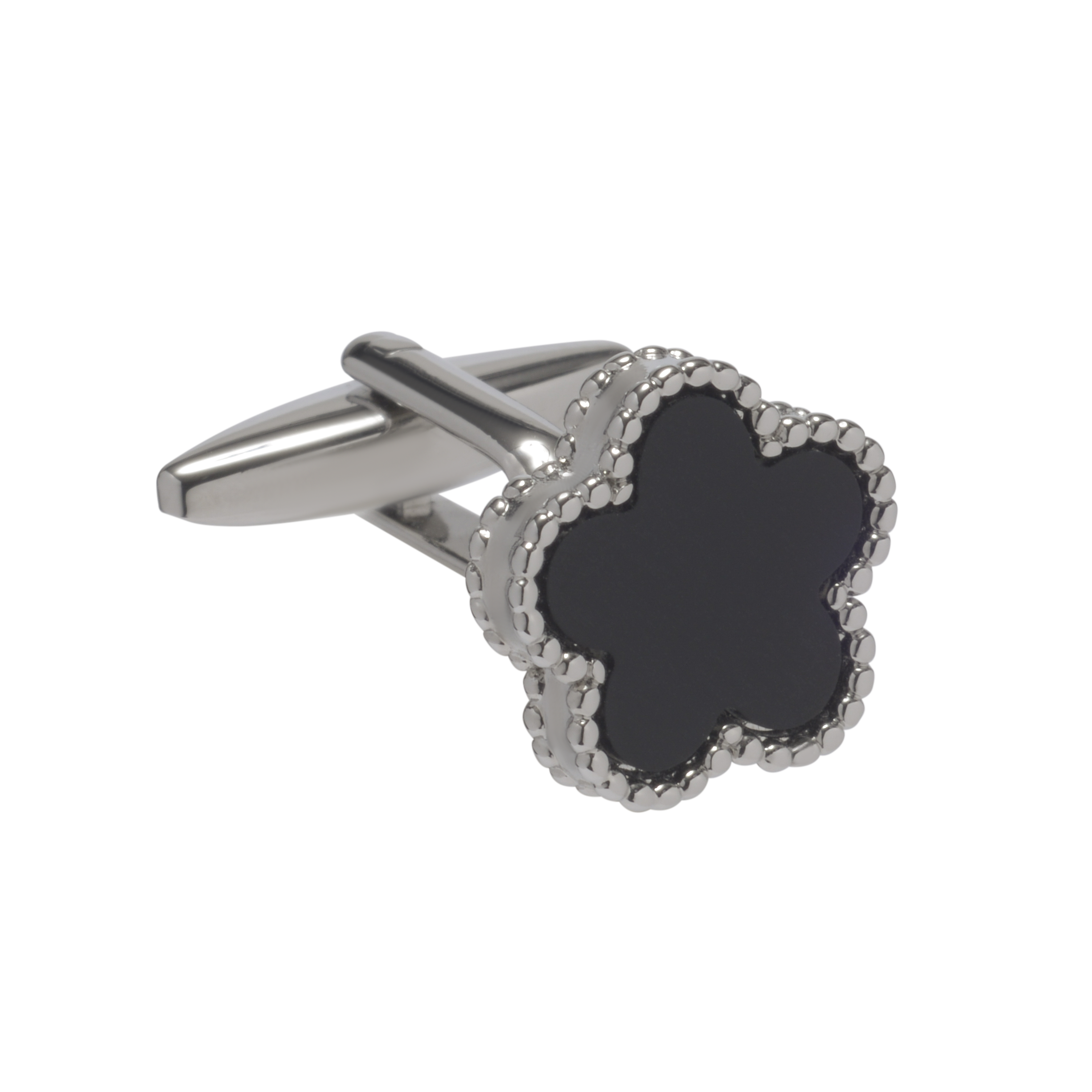 This luxurious and elegant Onyx stone and silver cufflink design features 5 glistening edged petals, making it the perfect accessory for both ladies' and men's cufflinks collections. The 5-petal flower is often associated with beauty, simplicity, and charm, and all of these qualities are embodied in this stunning pair of Onyx and silver cufflinks. Whether you're looking for a unique accessory to elevate your professional attire or add a touch of elegance to a casual outfit, these cufflinks are the ideal choice for both men’s cufflinks and women’s cufflinks wardrobes.
