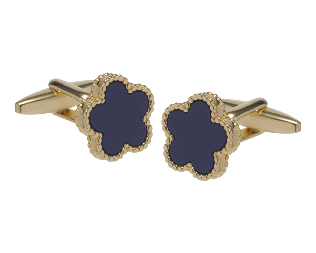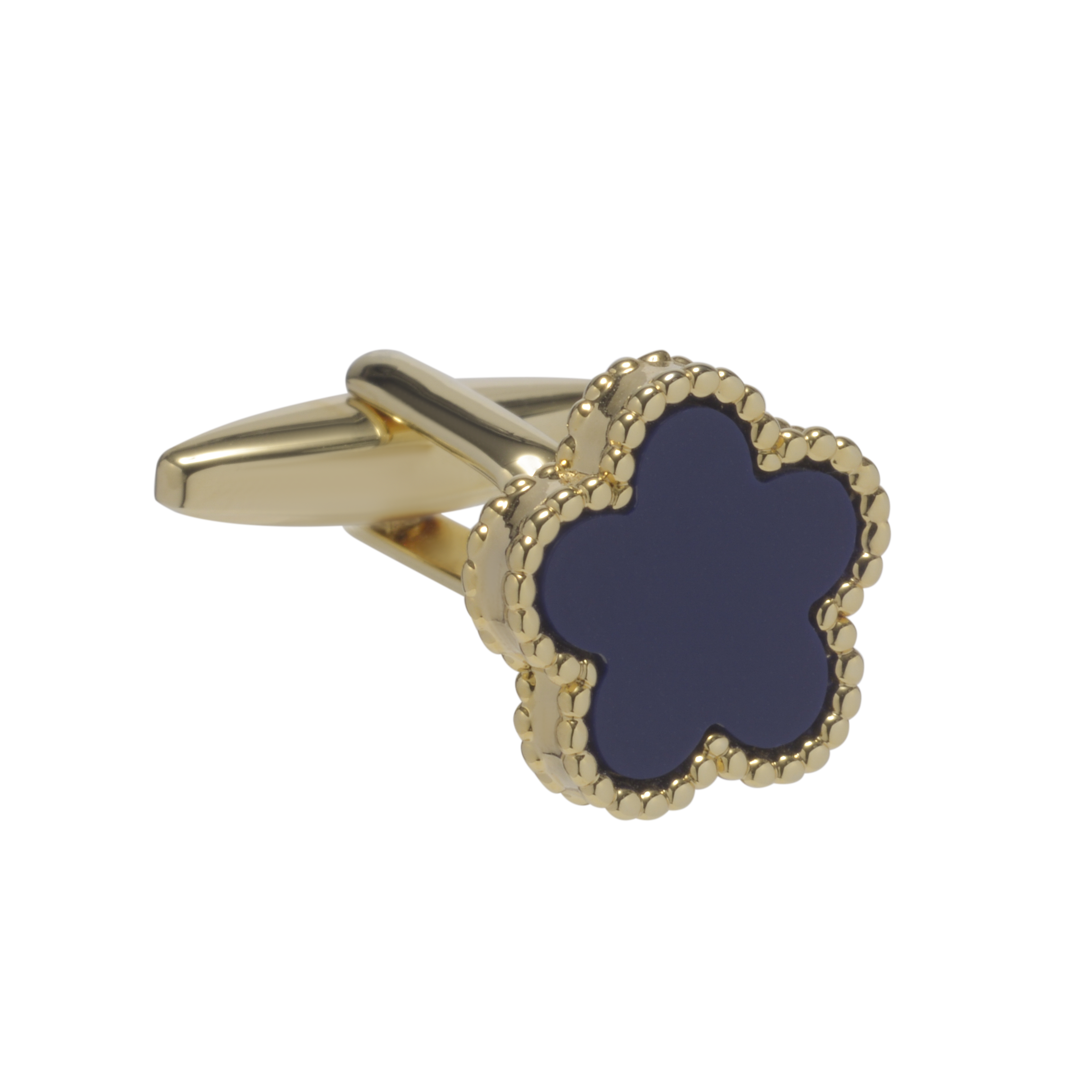 This luxurious and elegant Sodalite Pentamerous flower cufflink design features 5 glistening edged petals to add something special to anyone’s cuff. 5 petal flowers are often associated with beauty, simplicity, and charm. All of which can be found in this stunning pair of Gold & Sodalite Cufflink.