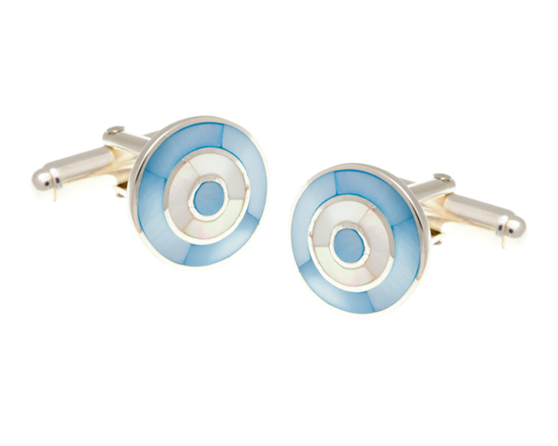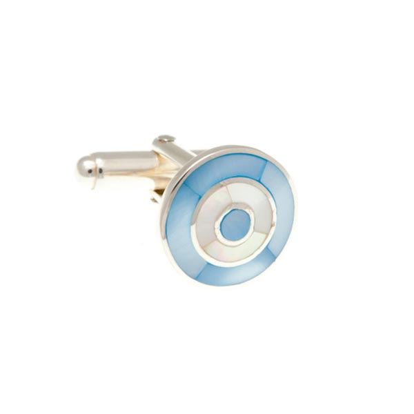 925 Sterling Silver Blue White Mother Of Pearl Target Cufflinks