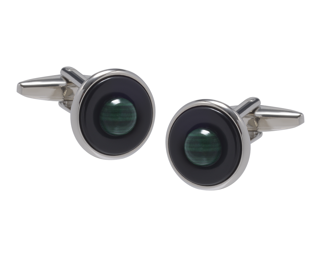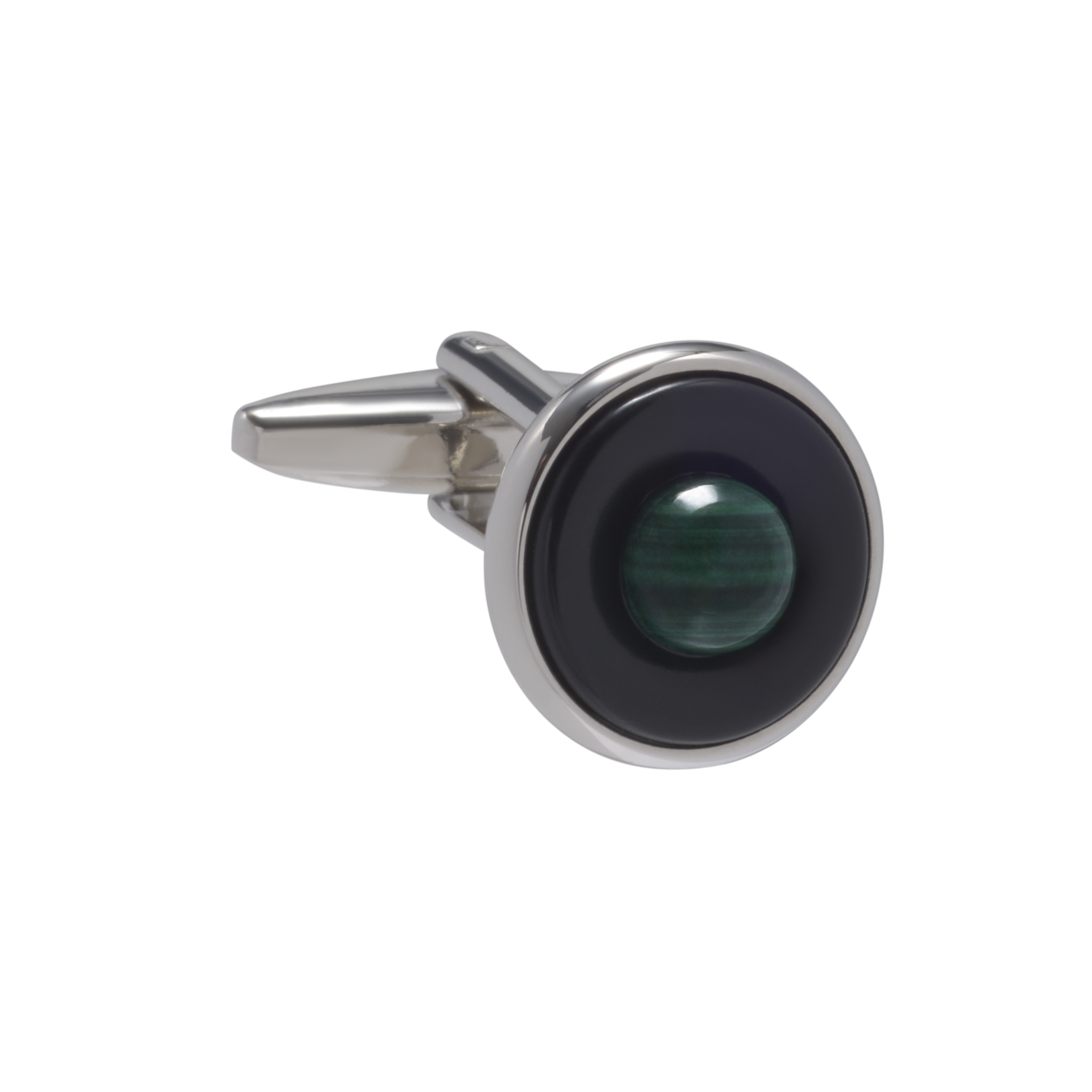 Inspired by the captivating rings of Saturn, these cufflinks celebrate cosmic beauty through earthly elegance. The Saturn Sphere design features a striking Green Malachite cabochon, encircled by onyx, echoing the planet’s iconic silhouette. Symbolising balance and strength, this piece grounds your formalwear with subtle power.
