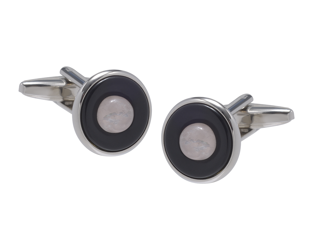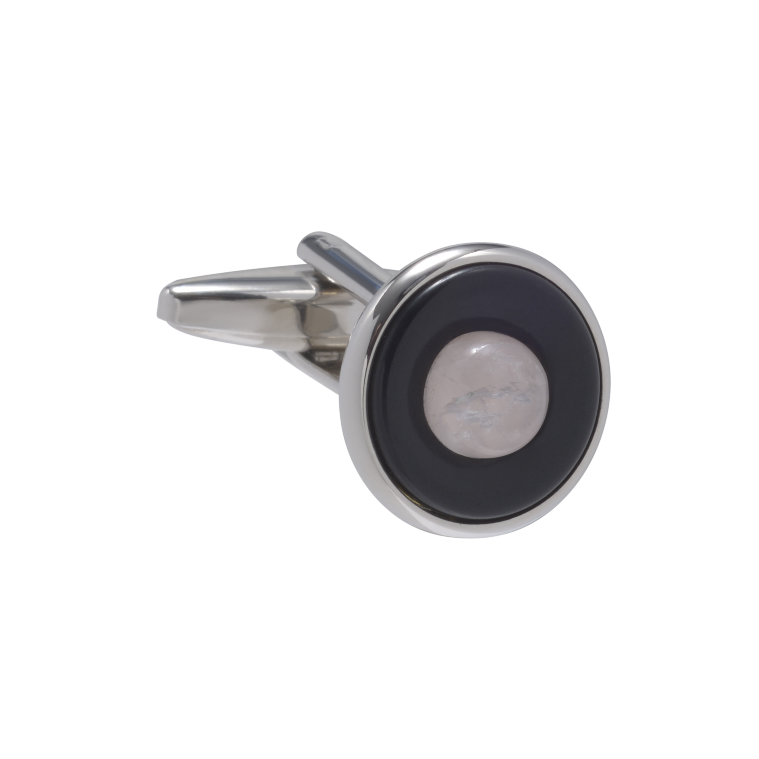 Inspired by the captivating rings of Saturn, these cufflinks celebrate cosmic beauty through earthly elegance. The Saturn Sphere design features a striking Rose Quartz cabochon, encircled by onyx, echoing the planet’s iconic silhouette. Symbolising balance and strength, this piece grounds your formalwear with subtle power.