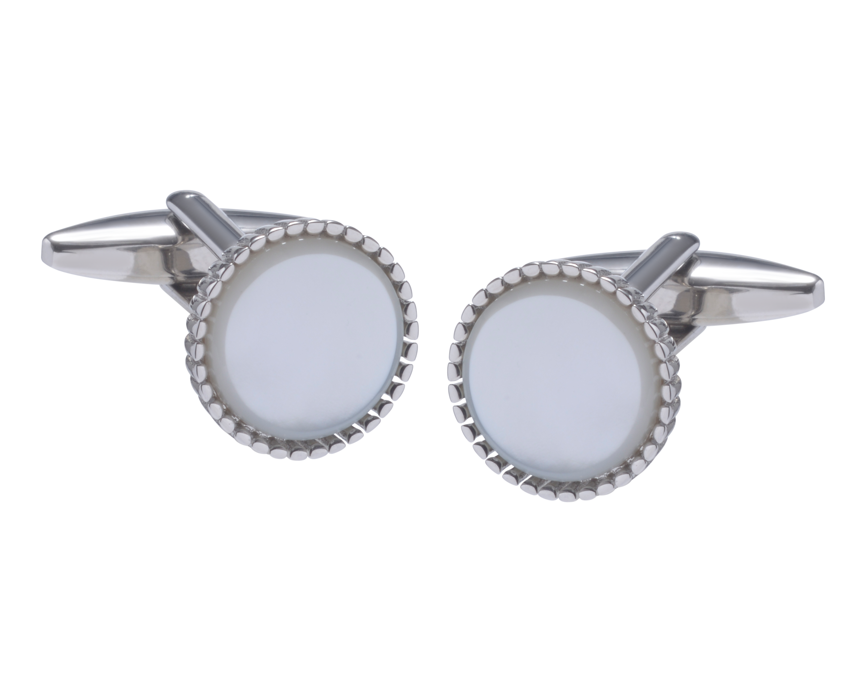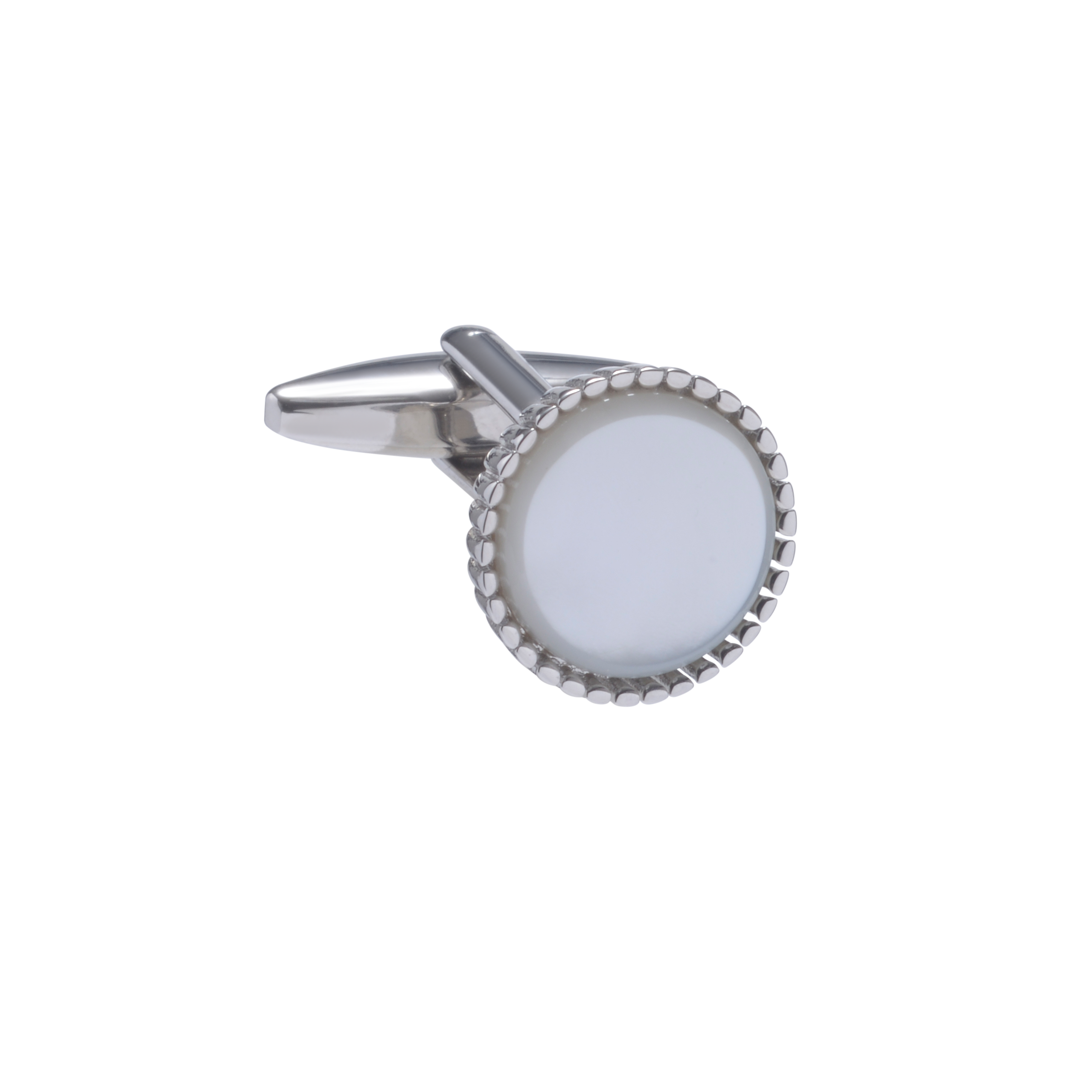 This delicate Rhodium fluted trim edge compliments the stunning Mother of Pearl stone it encases. Inspired by sculptures of nature, these cufflinks reflect the delicate form of foliage, combined with the boldness of stone.