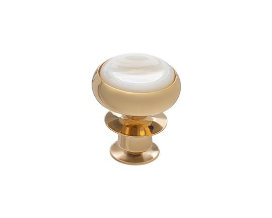 The Signature No2 Set includes a pair of cufflinks and a lapel pin with a delicate diameter of 14mm. Both feature an ethereal Mother of Pearl stone that protrudes from the edge of their gold casings, before dropping down to create a slight concave dip.