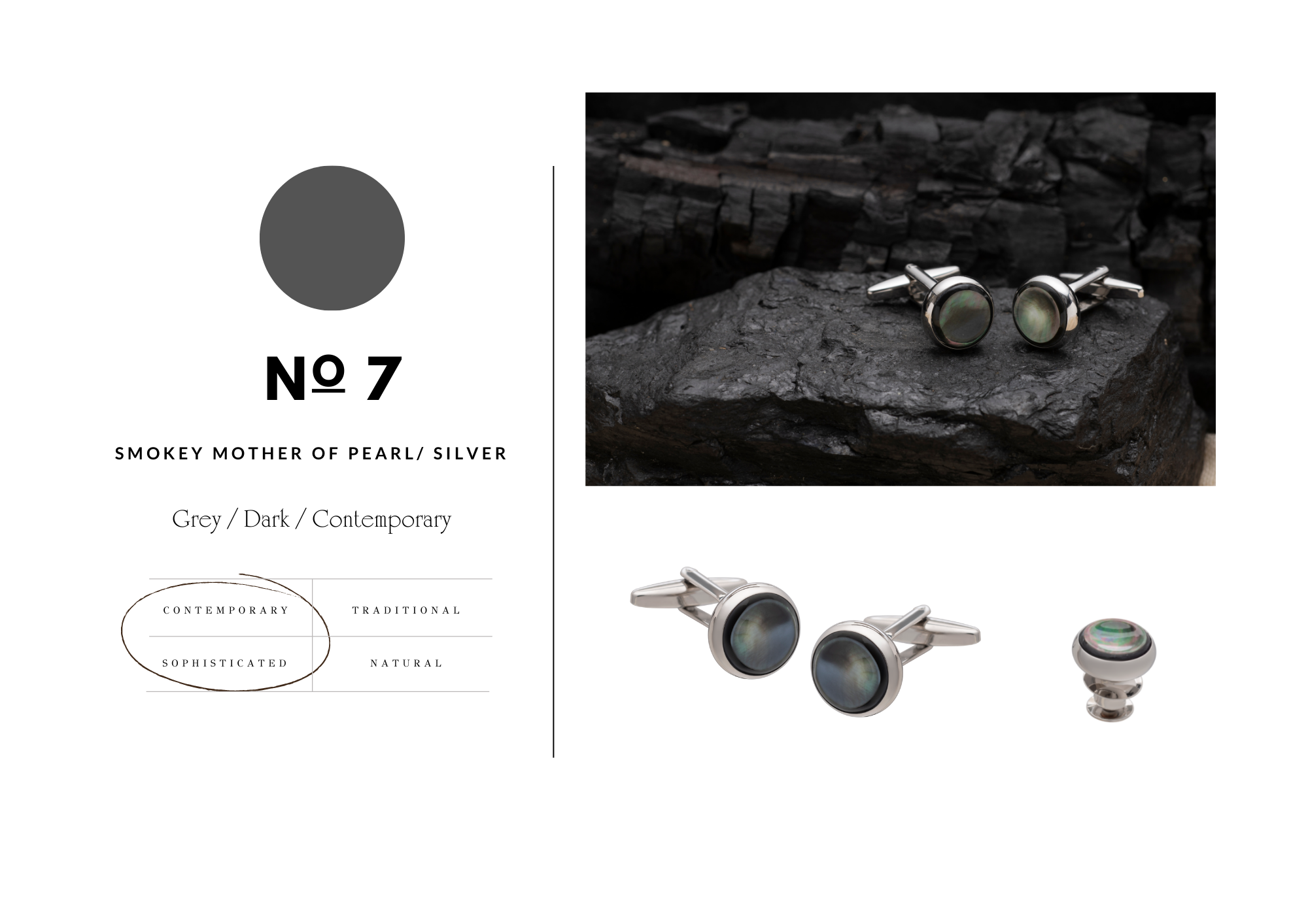 Signature Collection No7 Smokey Mother Of Pearl & Silver Cufflinks