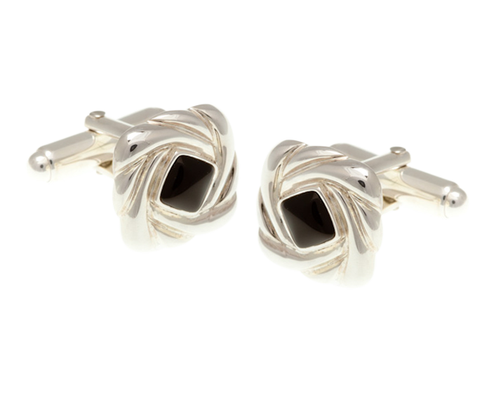 925 Sterling Silver Swirl Black Onyx Centre Cufflinks