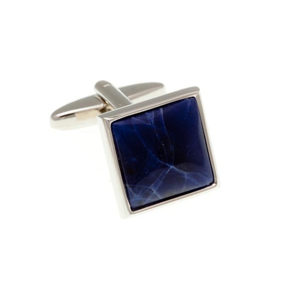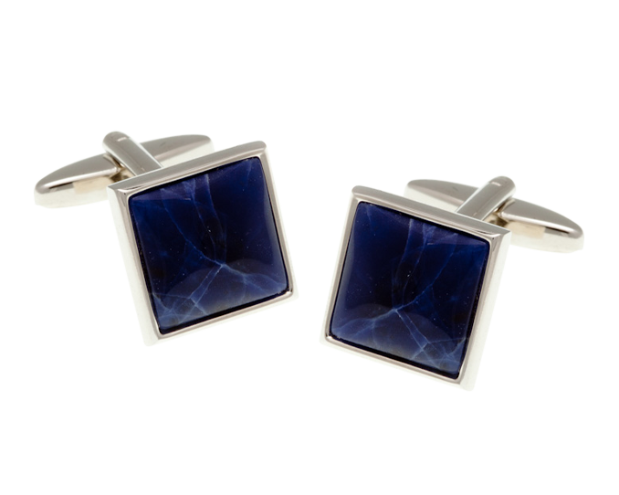 Strong classic corners determine the edges of these beautiful cabochon semi precious square sodalite cufflinks.