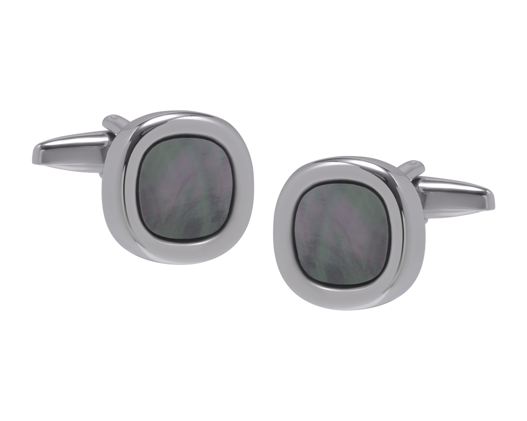 Minimalist and powerful, The Squircle in smokey mother of pearl is a masterclass in bold simplicity. The stone is framed in sleek metal, offering a crisp, modern finish that pairs effortlessly with formal or monochrome ensembles. An essential for any refined cufflink collection.