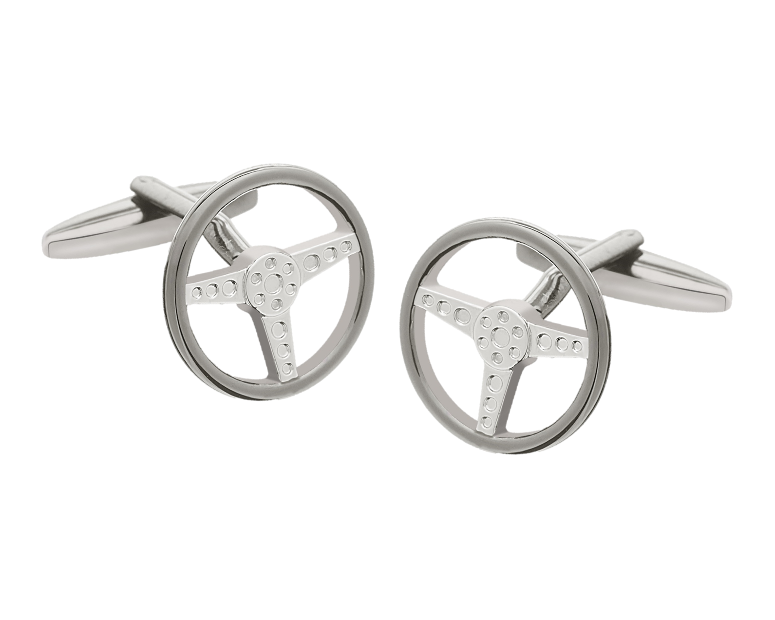 Turn on the fun within these iconic three spoke steering wheel cufflinks. Complete with gunmetal plate detailing they make a superb gift for any driving enthusiast.