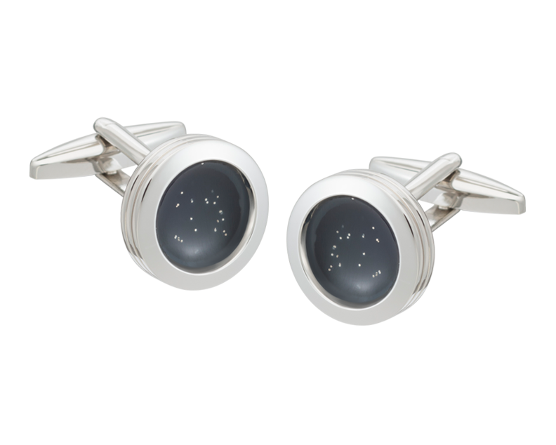 Recreating a vision of the night sky, silver flecks are scattered within a matt black enamel inlay to produce this delightful pair of modern cufflinks. The perfect accompaniment for a night on the town or a formal gathering.