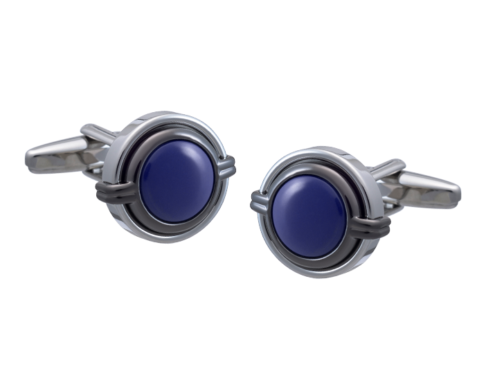 Elevate your formal attire with our Three Layer Grasp Onyx Cufflinks. The bold side detail and stacked design add character to any outfit. The cabochon Lapis centre and gunmetal layers exude luxury, perfect for both formal events and everyday wear. Add interest and personality to your look with this unique accessory.