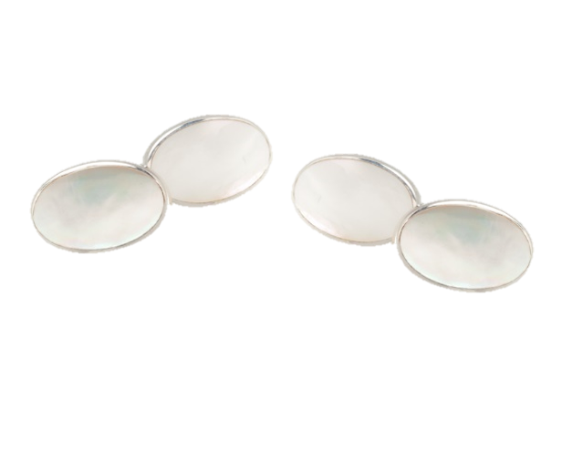 925 Sterling Silver Mother Of Pearl Double Oval Chain Link Cufflinks