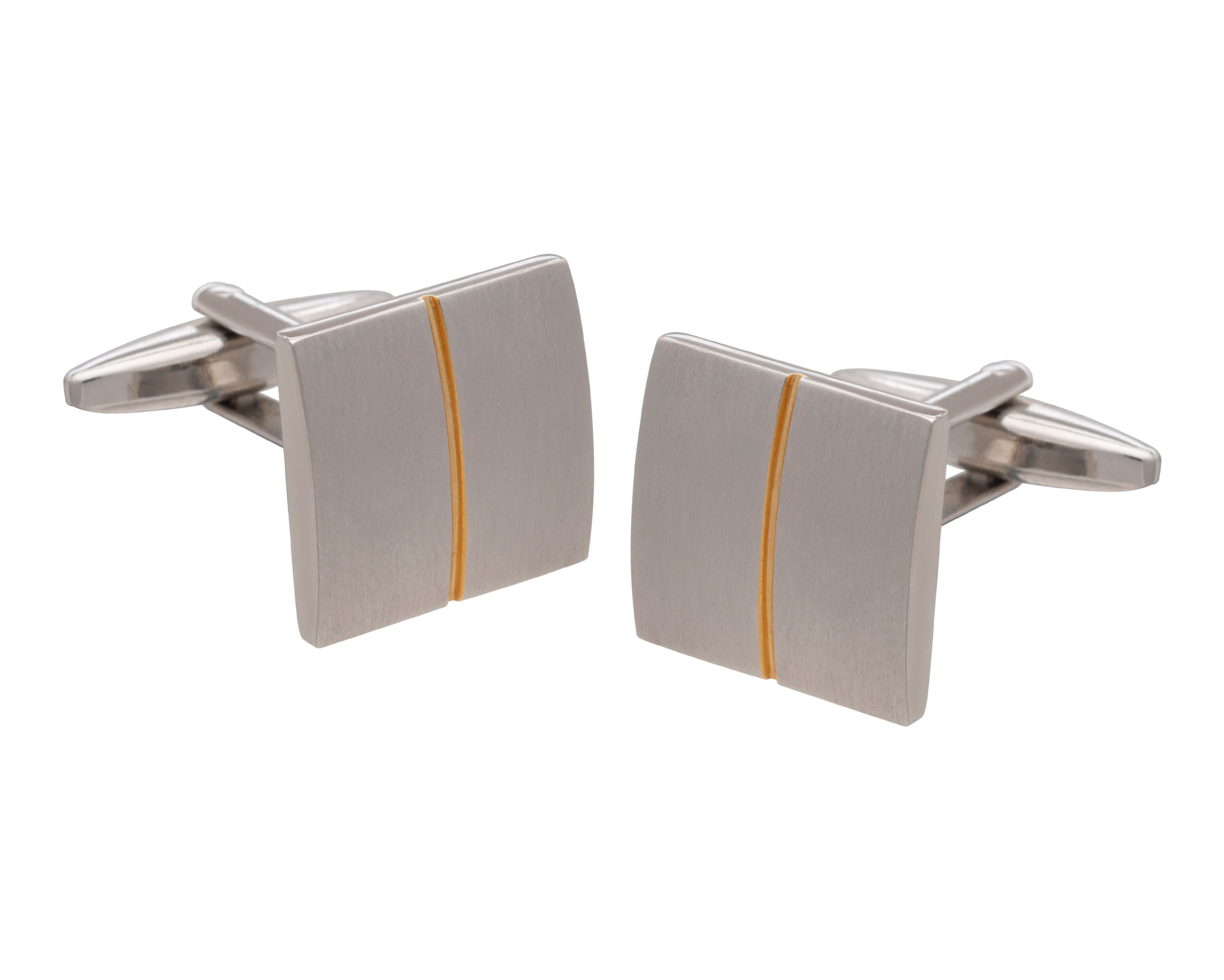 This discreet brushed silver cufflink features a small gold line inlay to add a pop of interest to an otherwise simplistic design. The perfect all-rounder for the man that will wear cufflinks for a multitude of events and reasons. Refined and welcome with any look.