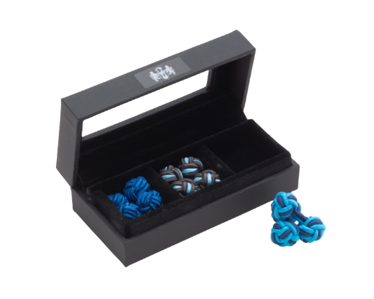 The Business as Usual cuffknots set includes graphite grey & sky blue, electric blue & navy and royal blue cuffknots.