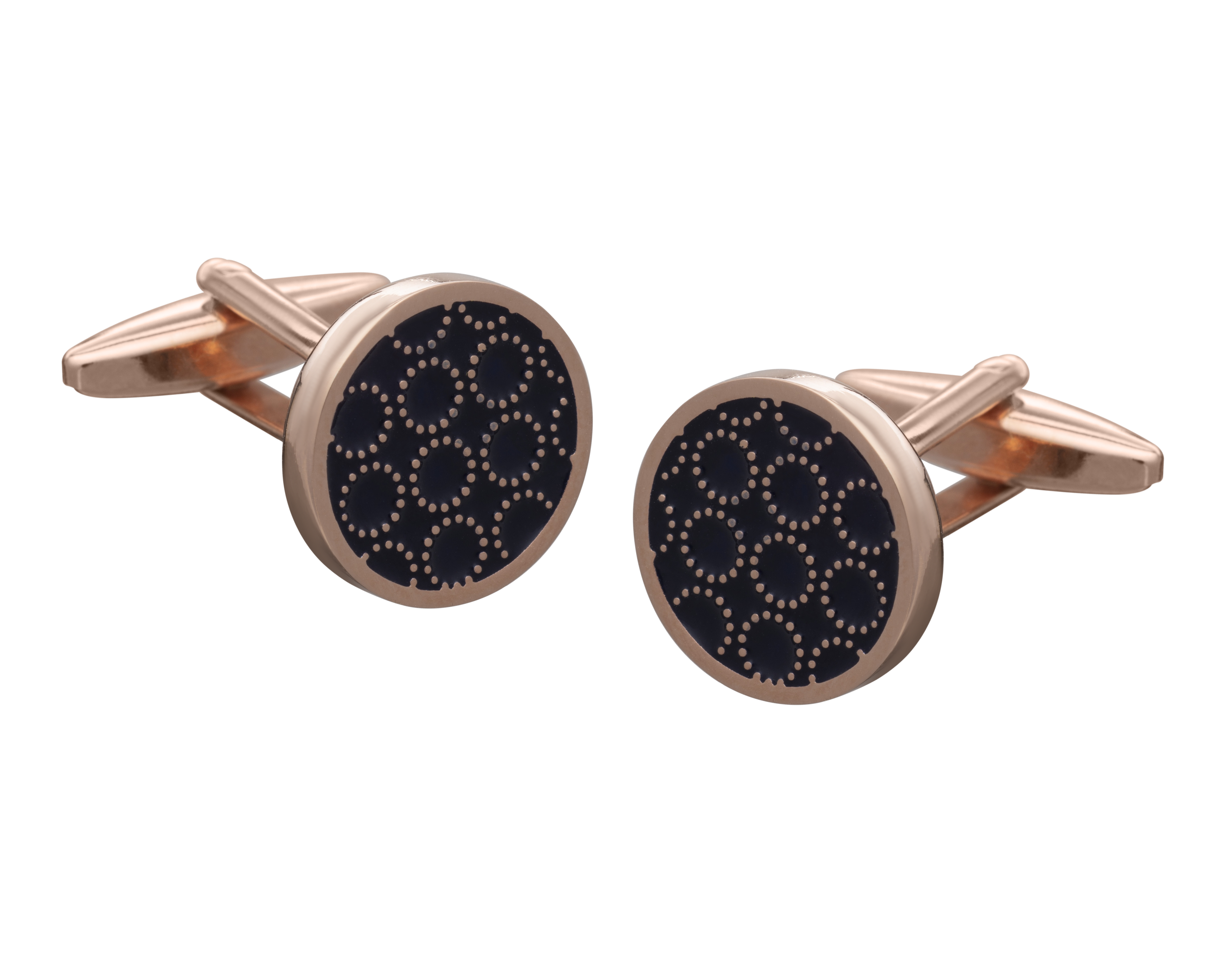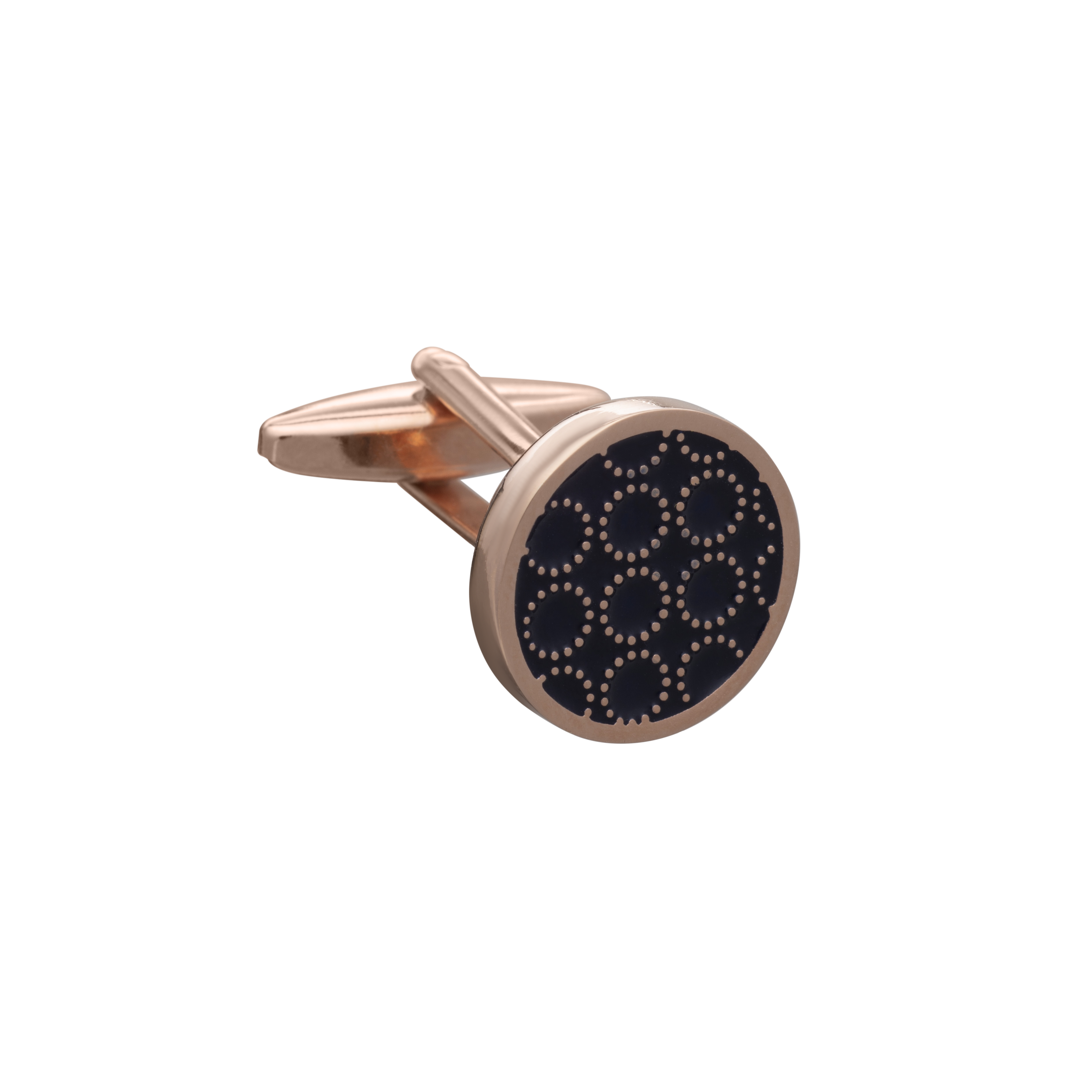 Mixing Great Gatsby with Arabian Nights meet Circle O. This intricate metal and enamel cufflink combines midnight navy colour with beautiful rose gold to create an alluring finishing touch.