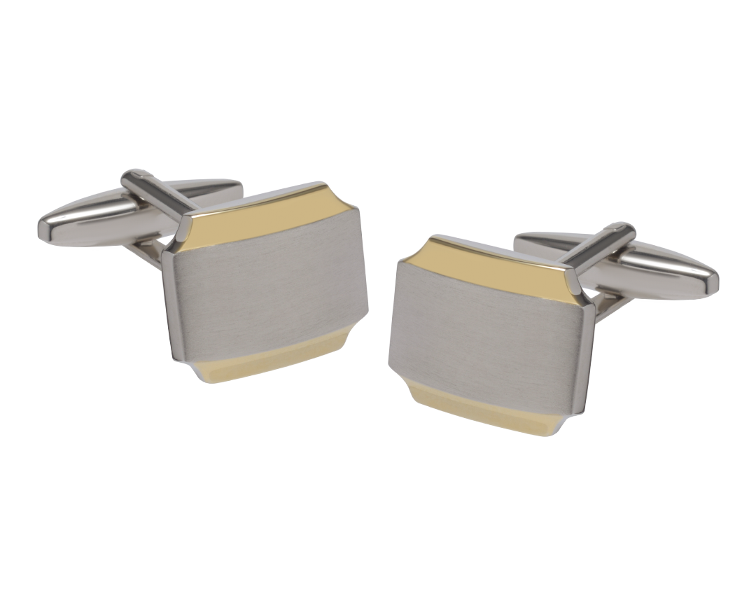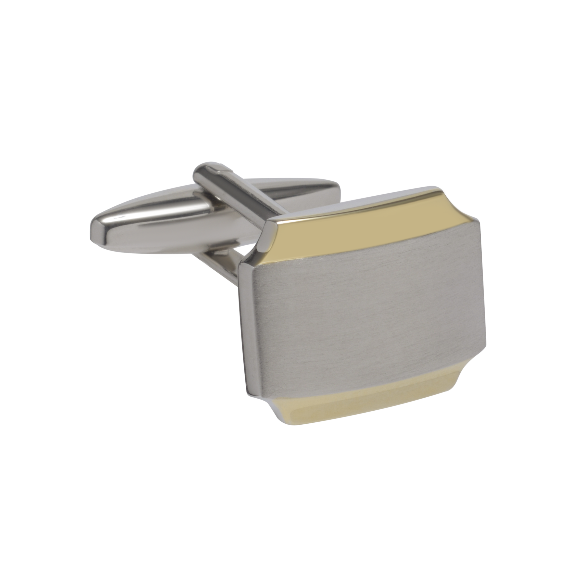 This handsome barrel shaped cufflink joins other mixed metal designs in the collection. Featuring two gold edges, this offers versatility and longevity.