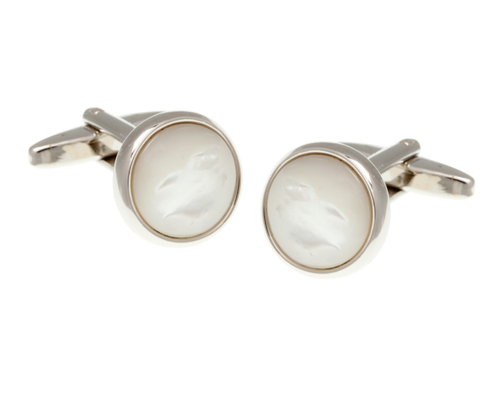 Our classic Mother of Pearl Cufflink and the satin flower boutonniere with silver stick pin come together to form an impeccable set for the dapper gent.