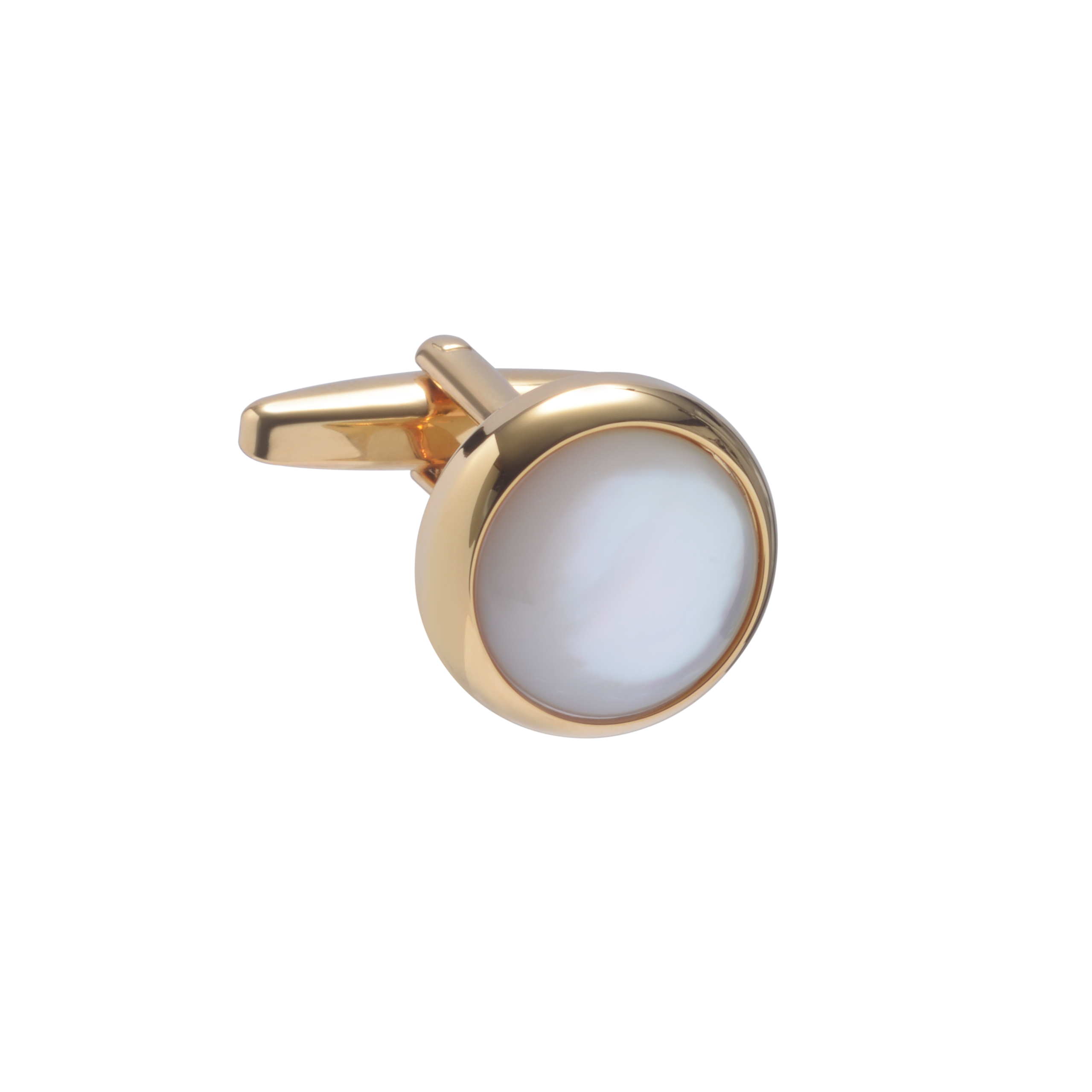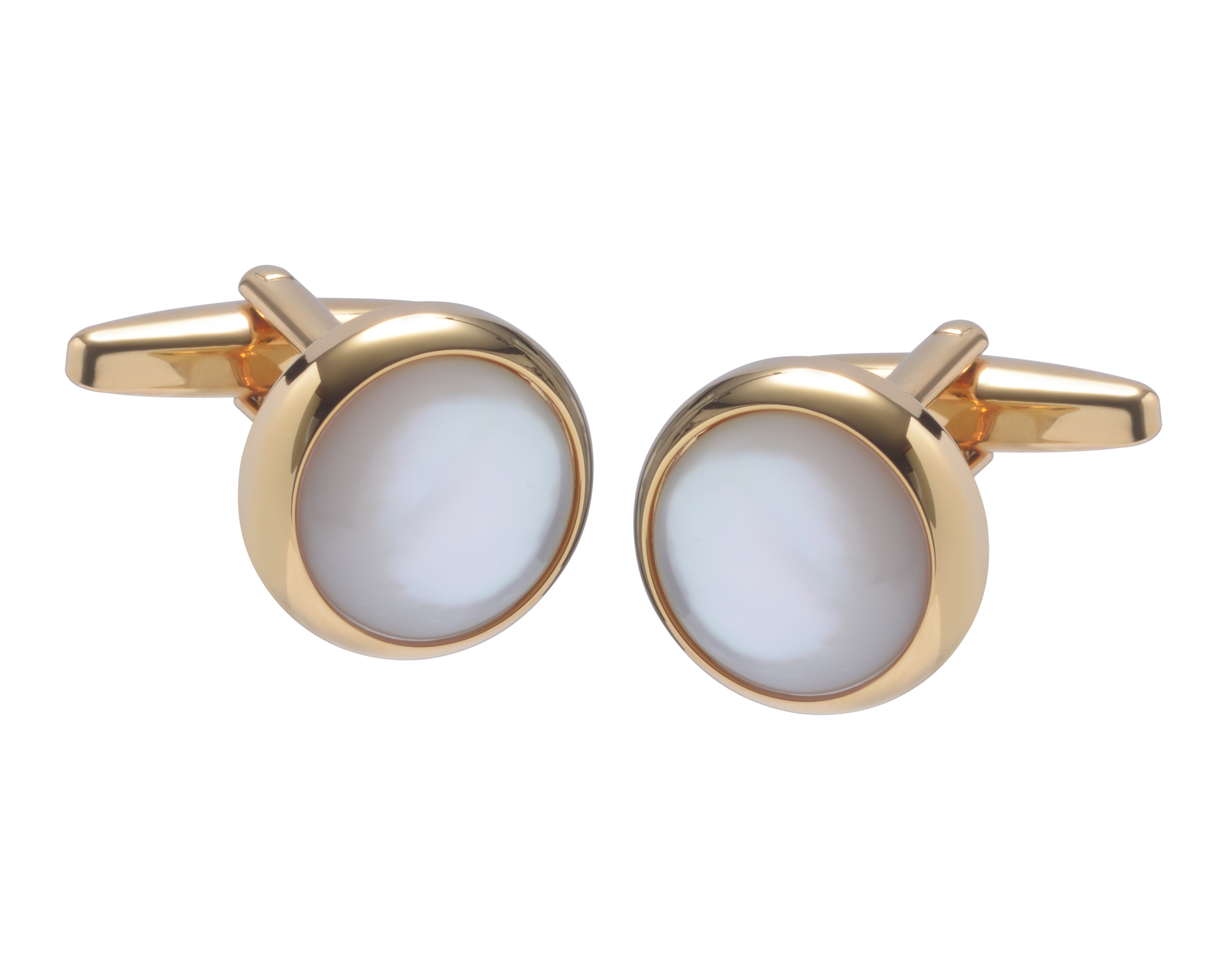 Our Timeless Classic Cufflink and the satin flower boutonniere with gold stick pin come together to form an impeccable set for the dapper gent.