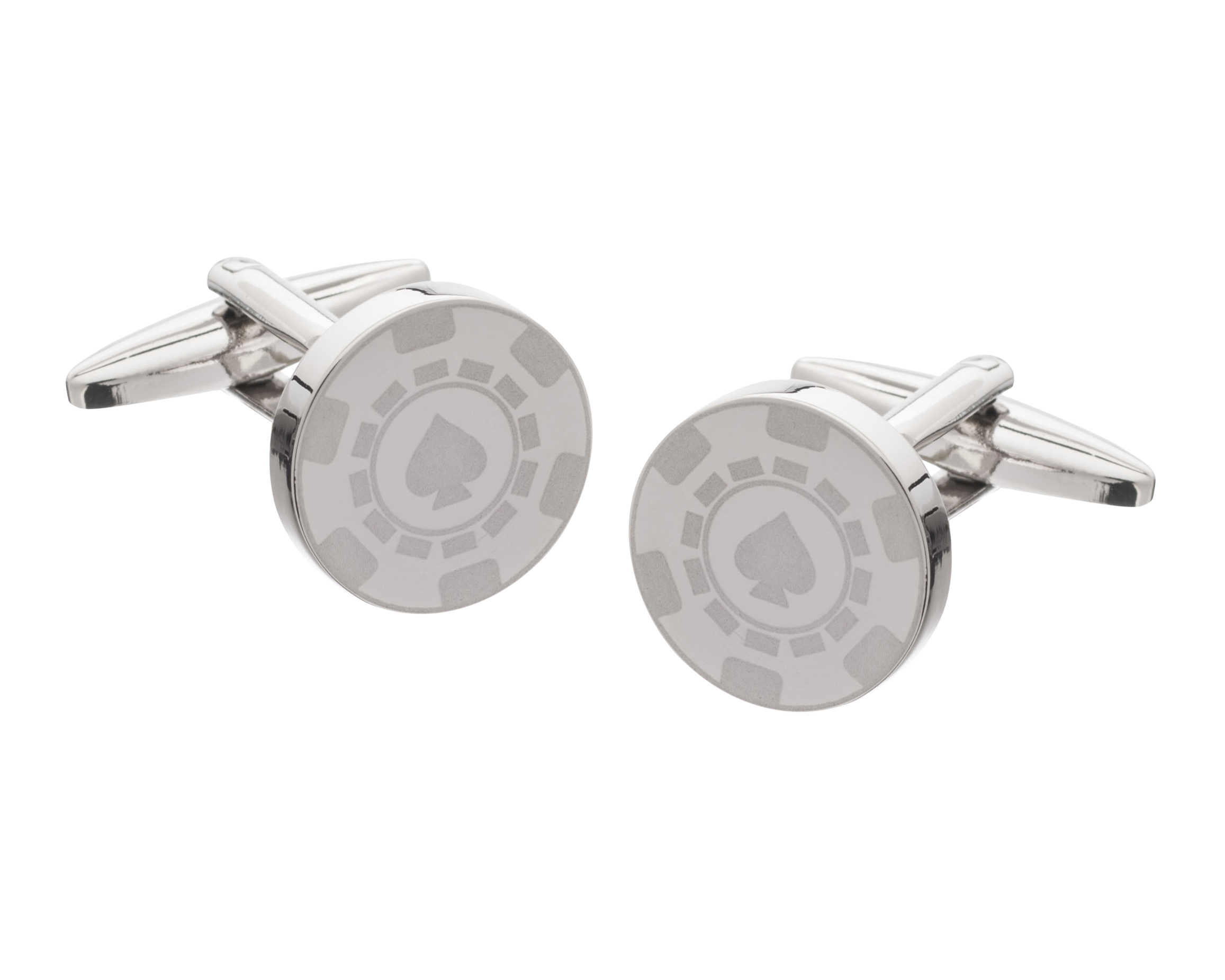 Evoke the excitement of the casino hall with these poker inspired, laser engraved plain metal cufflinks. You're sure to be the winner. Great gift idea for all occasions.