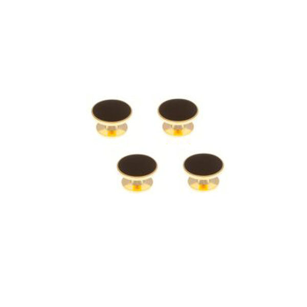 A stunning addition for any formal occasion - 4 gold plated/black enamel dress studs - wonderfully classic on a crisp white black tie dress shirt.