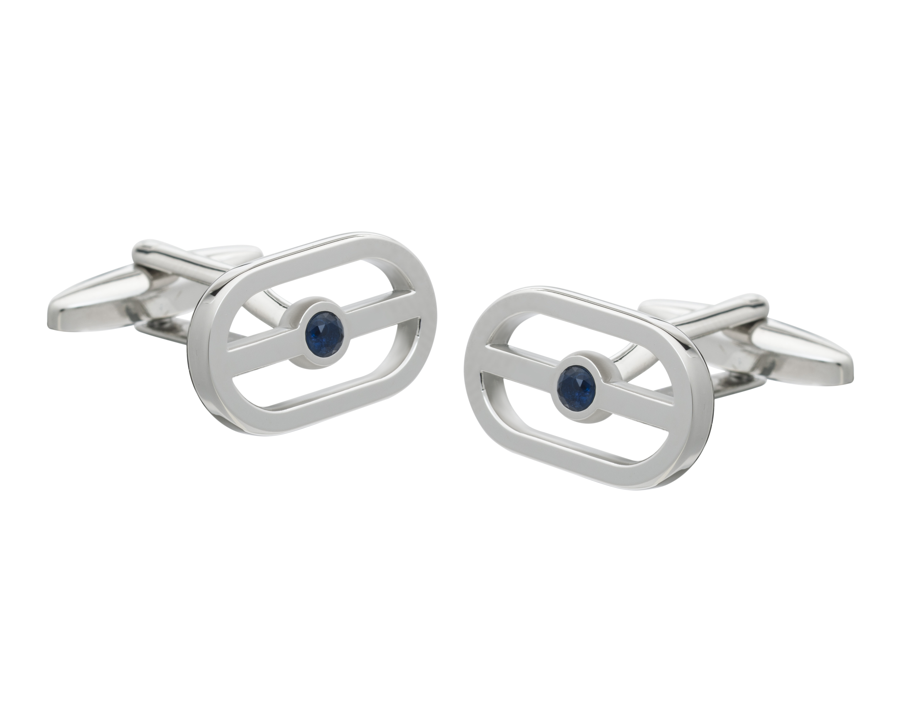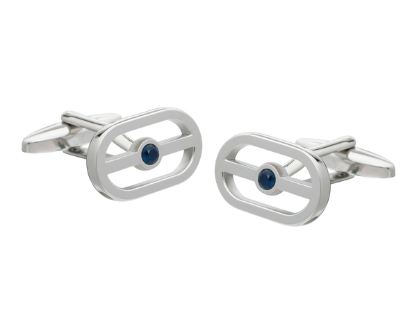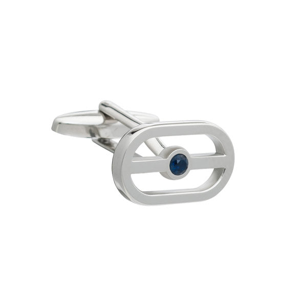 One shimmering blue crystal is at the centre of these eye-catching buckle cufflinks. Elegant and sophisticated the smooth polished finish creates a clean and crisp profile on the cuff for a perfect blend of glamour and refinement.