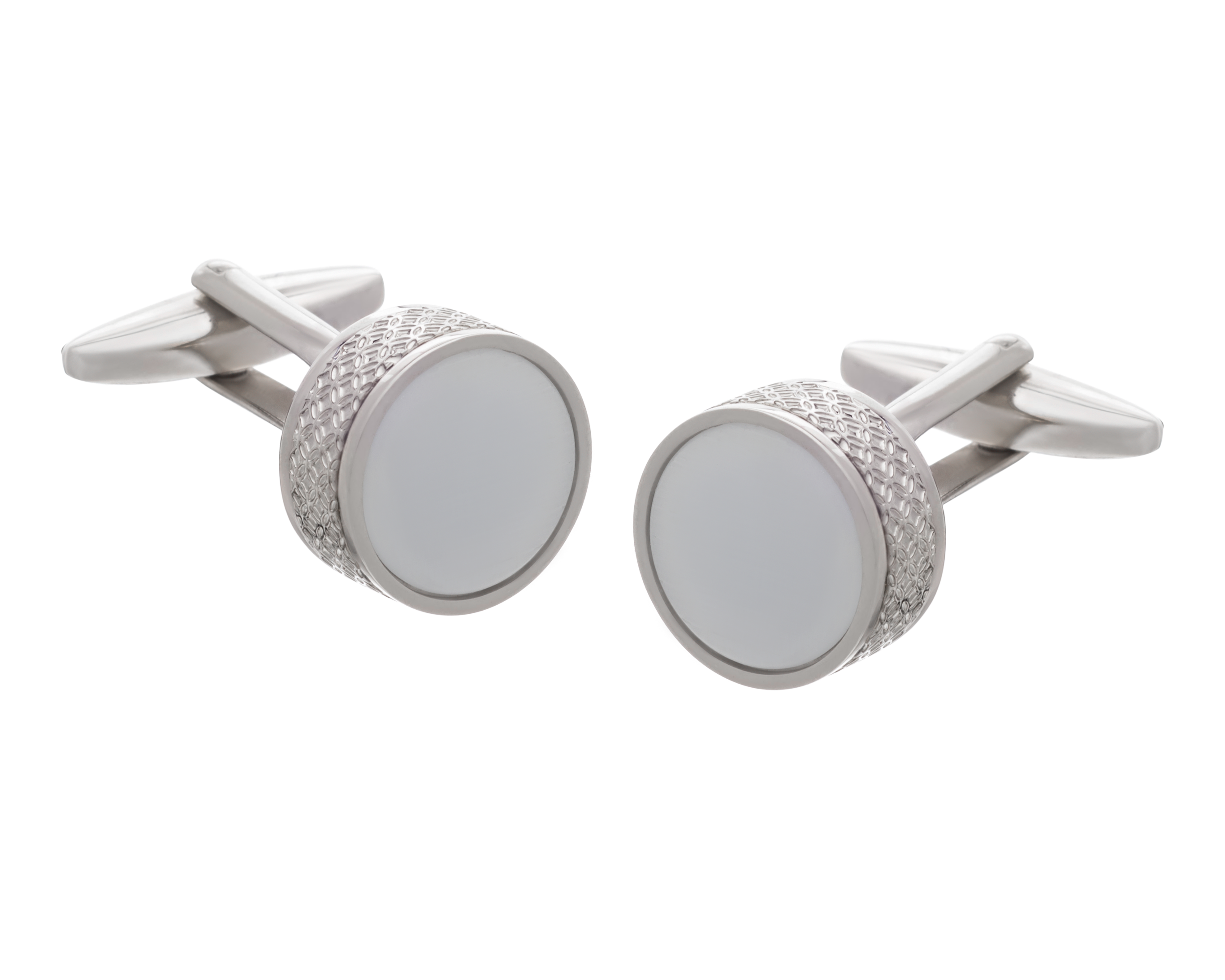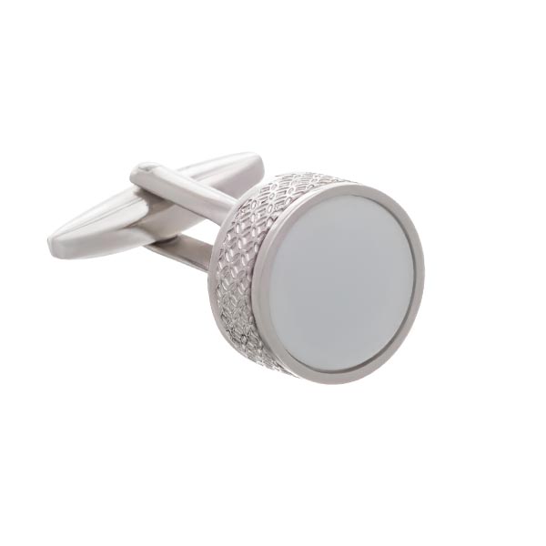 Standing bold and proud these circular white cufflinks are a truly elegant creation. The textured outer casing has echoes of industrialism whilst the coloured insert brings a richness and sense of luxury. A most wonderful combination and perfect accompaniment for both the office or bar.