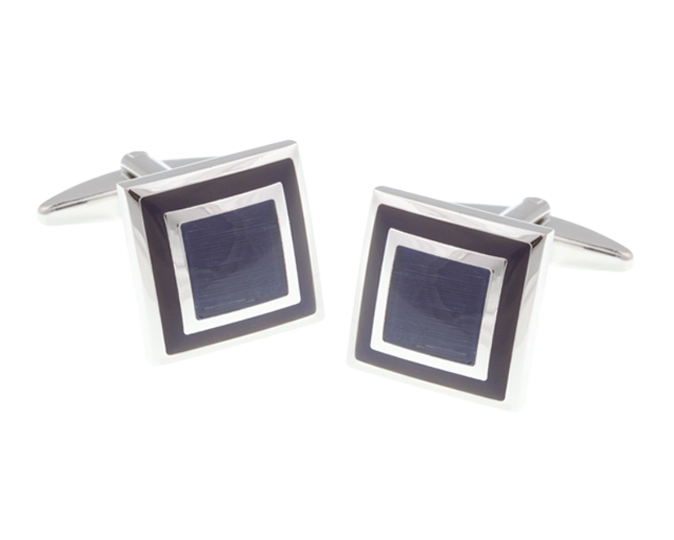 A timeless classic, the features of the Blue Square Border cufflink are as the name suggests. A light blue centre is bordered by both a sliver and dark blue border to create a three tiered design. Clean, crisp and contemporary they are perfect office attire.