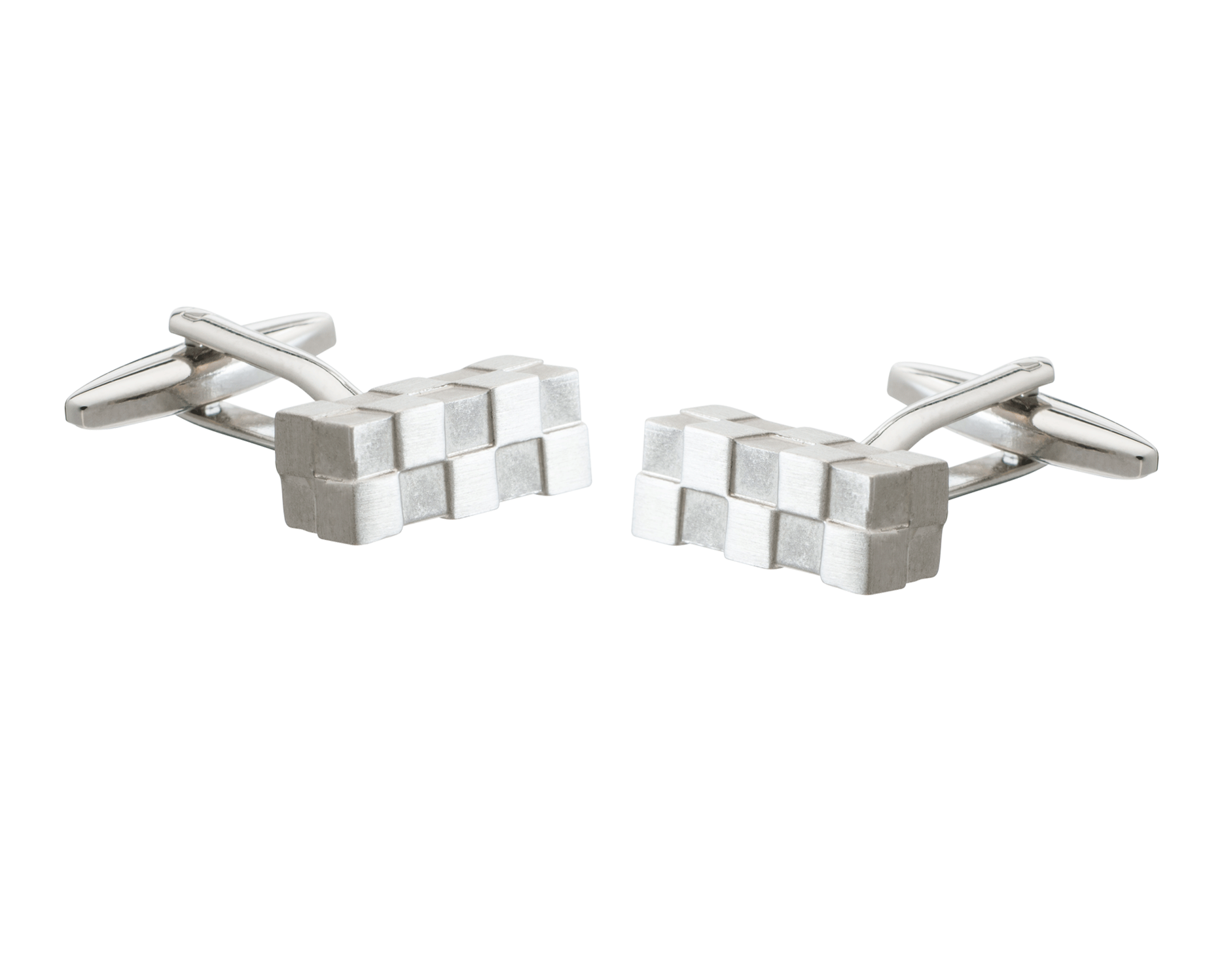 Influenced by the modern built environment these architecturally inspired cufflinks put a twist on the traditional bar. The irregular nature of the conjoining blocks creates a visually and physically interesting piece. They are sure to grab attention on your cuff.