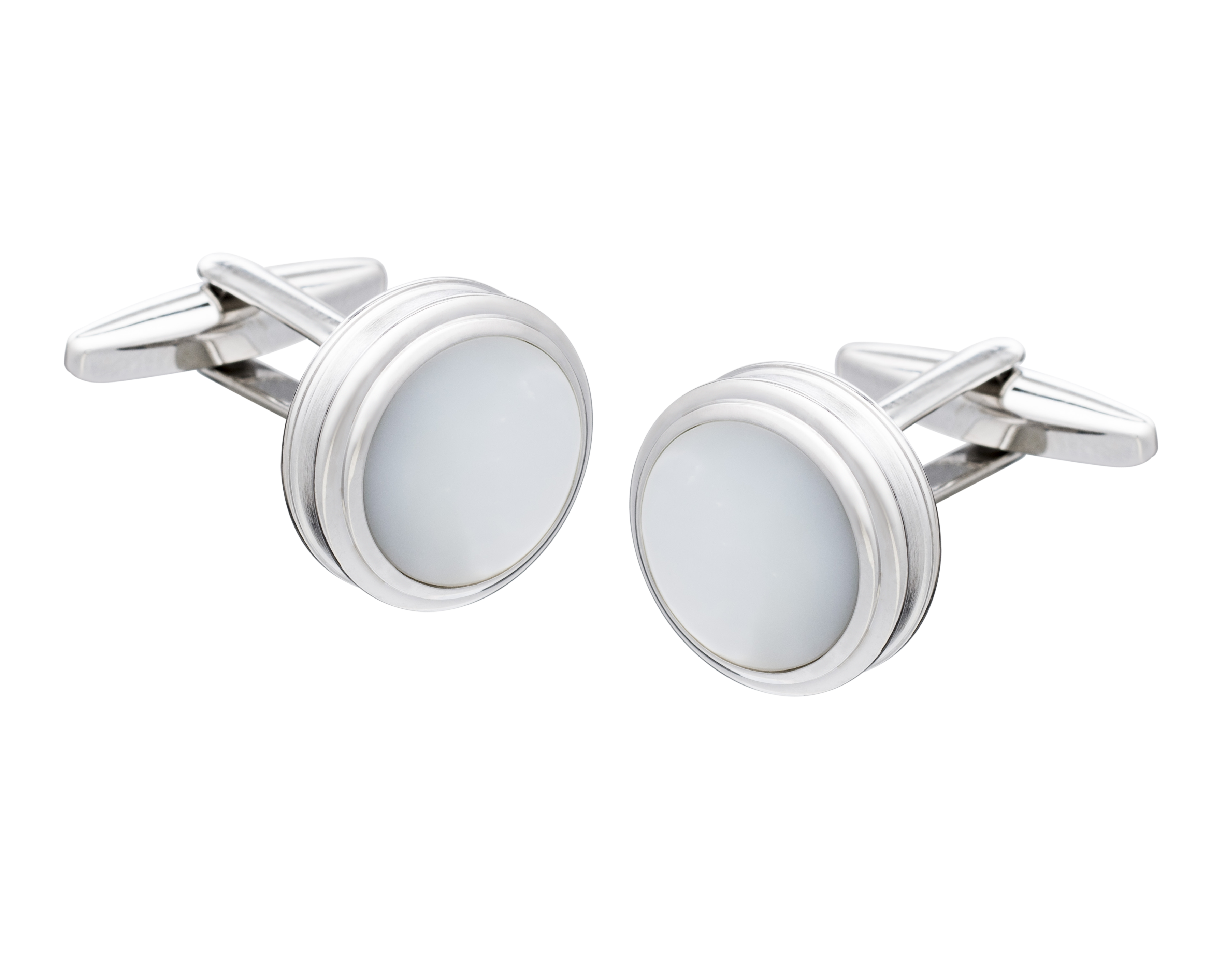 The Barrelled Edge in Mother of Pearl, fuses together traditional Mother of Pearl with bevelled rhodium plate to create a unique look from all aspects.