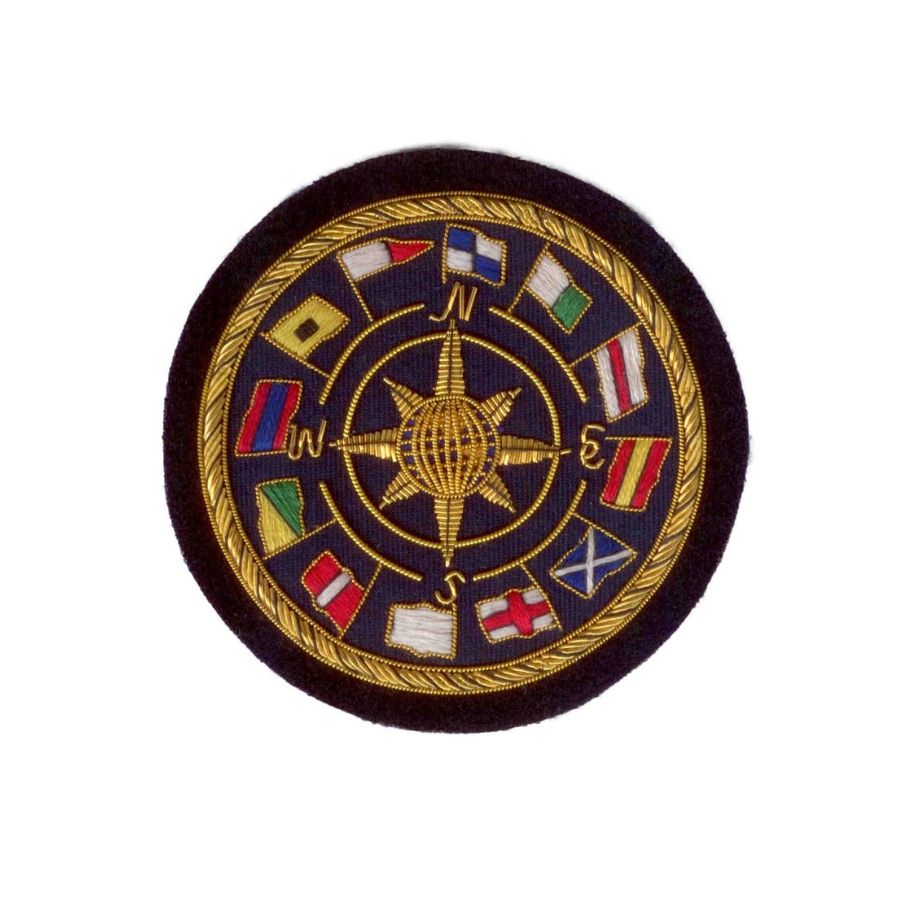 This beautiful hand embroidered wire blazer badge crest has been created using gold & silver bullion. This classic & oh so timeless heraldic design is created on a dark navy blue background to a stunning quality finish.
