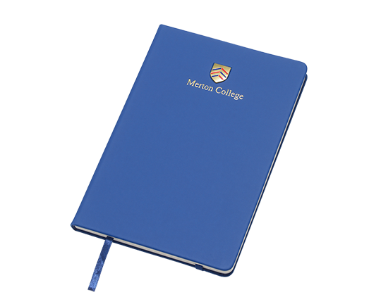 The College Collection Notebook is the perfect paper acquaintance to accompany any scholarly journey. This classic A5 lined notebook is personalised with the Merton College name in luxury gold foil and boasts a beautifully crafted metal and enamel crest inlayed into the deep blue PU cover.