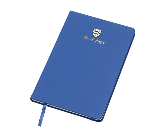 The College Collection Notebook is the perfect paper acquaintance to accompany any scholarly journey. This classic A5 lined notebook is personalised with the New College name in luxury gold foil and boasts a beautifully crafted metal and enamel crest inlayed into the deep blue PU cover.