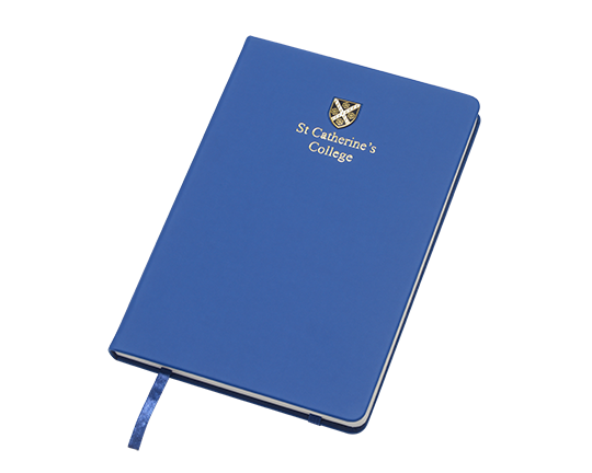 The College Collection Notebook is the perfect paper acquaintance to accompany any scholarly journey. This classic A5 lined notebook is personalised with the St Catherine's College name in luxury gold foil and boasts a beautifully crafted metal and enamel crest inlayed into the deep blue PU cover.