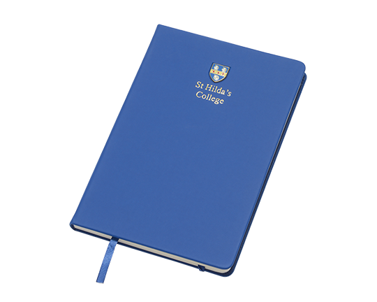 The College Collection Notebook is the perfect paper acquaintance to accompany any scholarly journey. This classic A5 lined notebook is personalised with the St Hilda's College name in luxury gold foil and boasts a beautifully crafted metal and enamel crest inlayed into the deep blue PU cover.